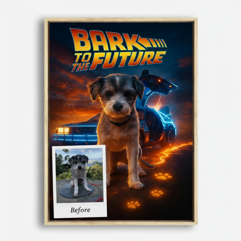 Add your pet's name, choose a background color, customize the style, and select a frame & size.
